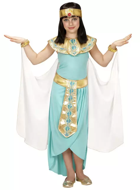 Conquistarás todos los corazones con este disfraz de reina egipcia azul para niña