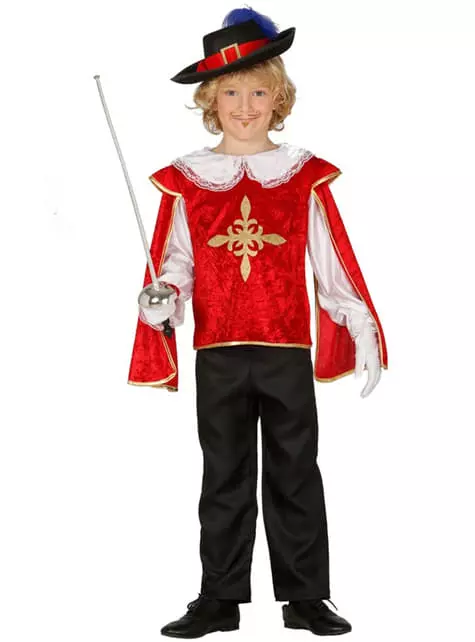 Protege el reino con este disfraz de mosquetero valiente para niño.
