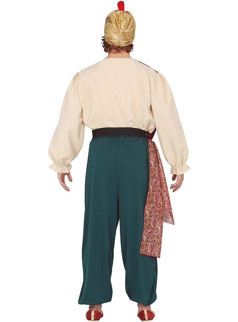 Incluye: Camisa con chaleco, pantalón con pañuelo y cinturón, turbante