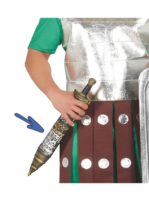 Incluye una espada de 56 cm con funda plateada y dorada.