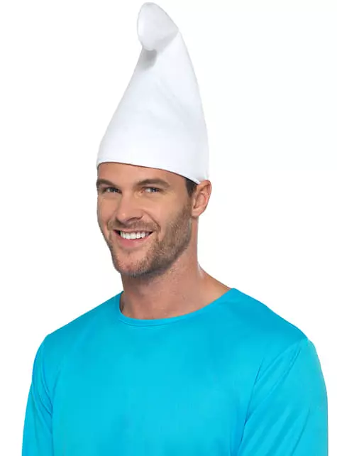 Este gorro de Pitufo es blanco a juego con los pantalones de Pitufo (a diferencia del gorro de Papá Pitufo).