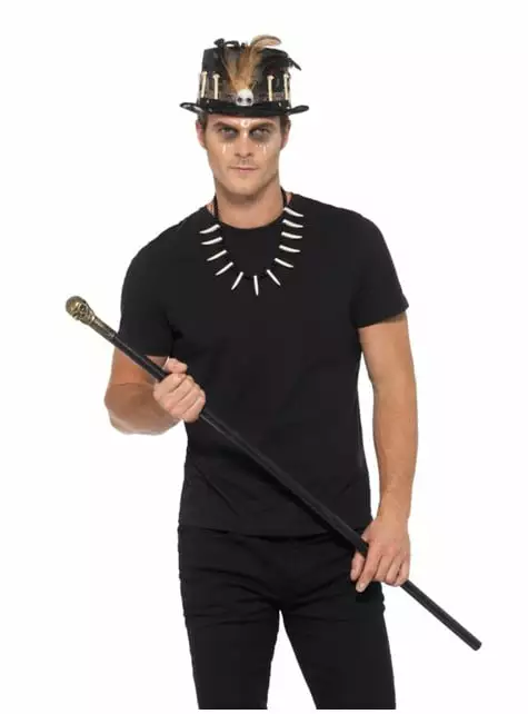 Incluye: sombrero, collar y cetro de calavera desmontable