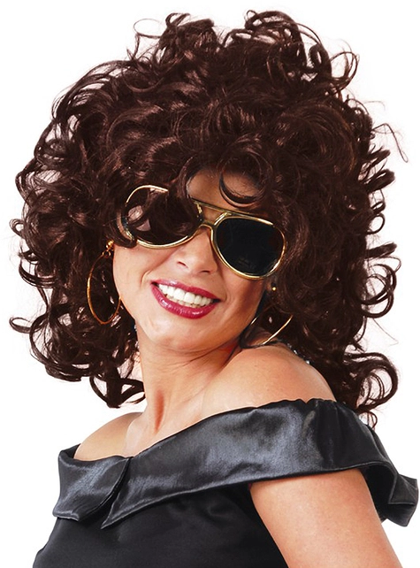 Transfórmate y vive la fiesta con alegría con esta peluca de rizos negra moderna.
