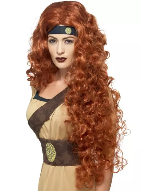 Incluye una peluca de pelo largo ondulado y pelirrojo.