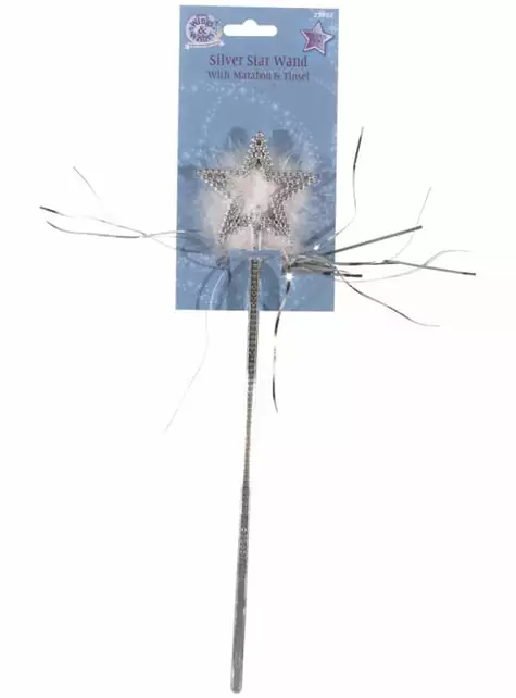 Incluye una varita en tonos rosas y plateados con una bonita estrella.